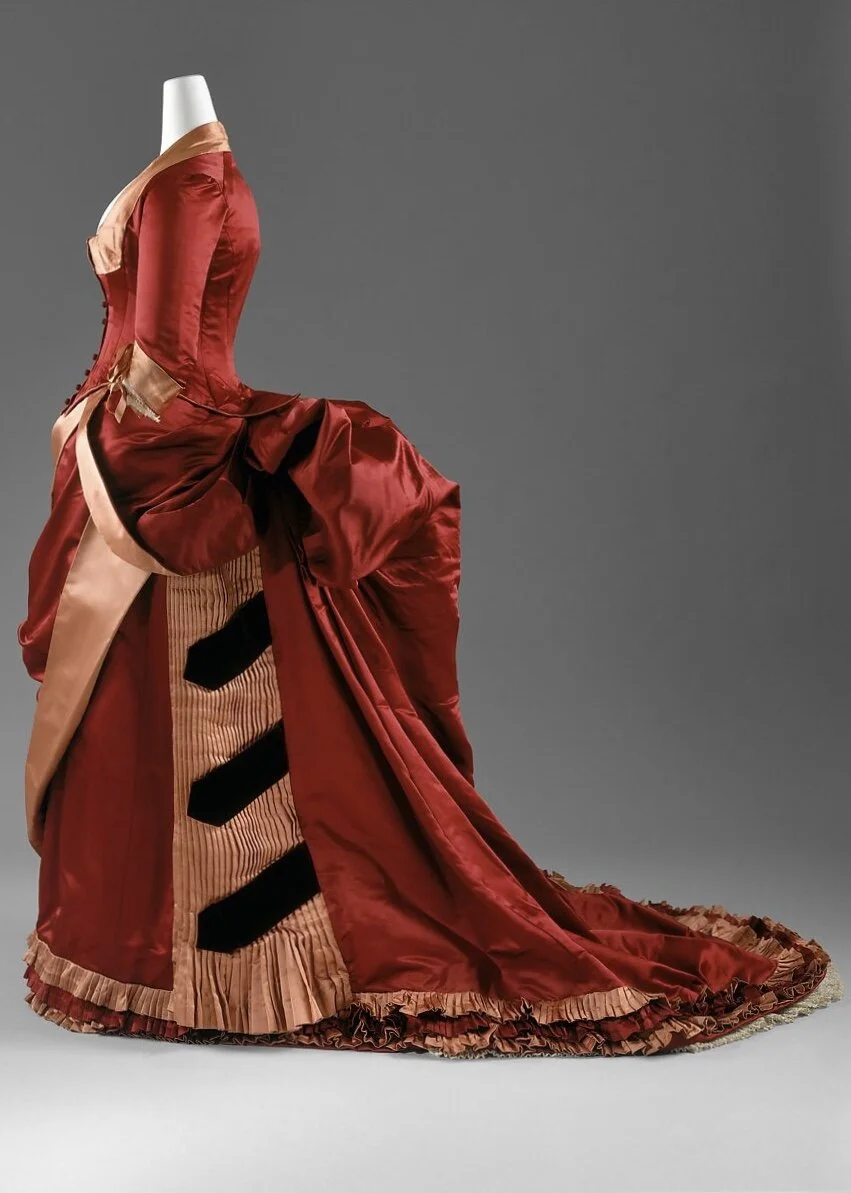 Dress. ca. 1880. Metropolitan Museum of Art Costume Institute, https://www.metmuseum.org/art/collection/search/82460?searchField=All&sortBy=Relevance&deptids=8&ft=1880+dress&offset=0&rpp=20&pos=3
