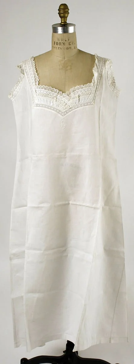 Chemise. late 1880s. Metropolitan Museum of Art Costume Institute, https://www.metmuseum.org/art/collection/search/109237?searchField=All&sortBy=Relevance&deptids=8&ft=1880+underwear&offset=0&rpp=80&pos=8