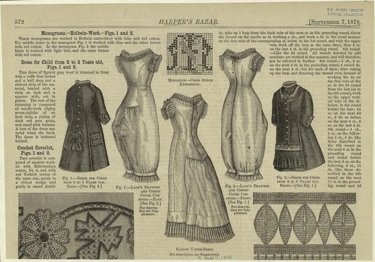 Dresses and Underwear for Women and Children, 19th Century. 1978. Harper’s Bazaar, New York Public Library Digital Collections,https://digitalcollections.nypl.org/items/510d47e1-1ebb-a3d9-e040-e00a18064a99