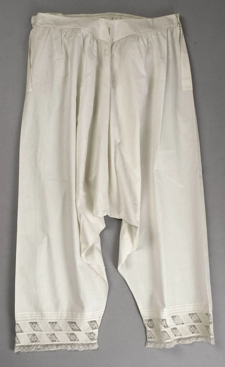 Drawers. 1880s. Metropolitan Museum of Art Costume Institute,https://www.metmuseum.org/art/collection/search/109205?searchField=All&sortBy=Relevance&deptids=8&ft=1880+underwear&offset=0&rpp=80&pos=17