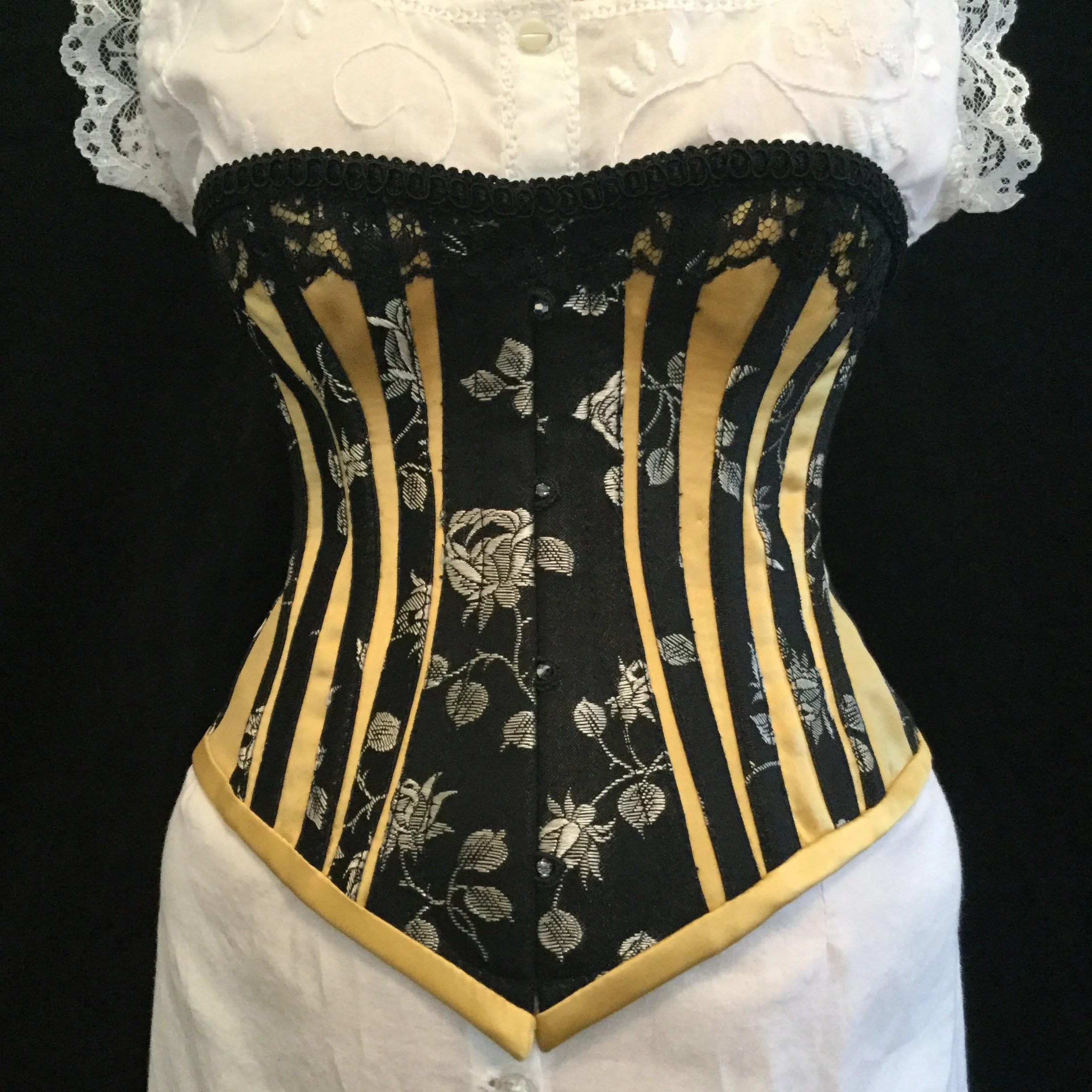 After leaving it to cool completely, I cut out the busk and split it down the middle. Overall, I'm happy with the final product but I wouldn't say that it's really doing any heavy lifting. It has the right shape and even gives the front a wee bit of a curve though so I'm still glad I did it.
