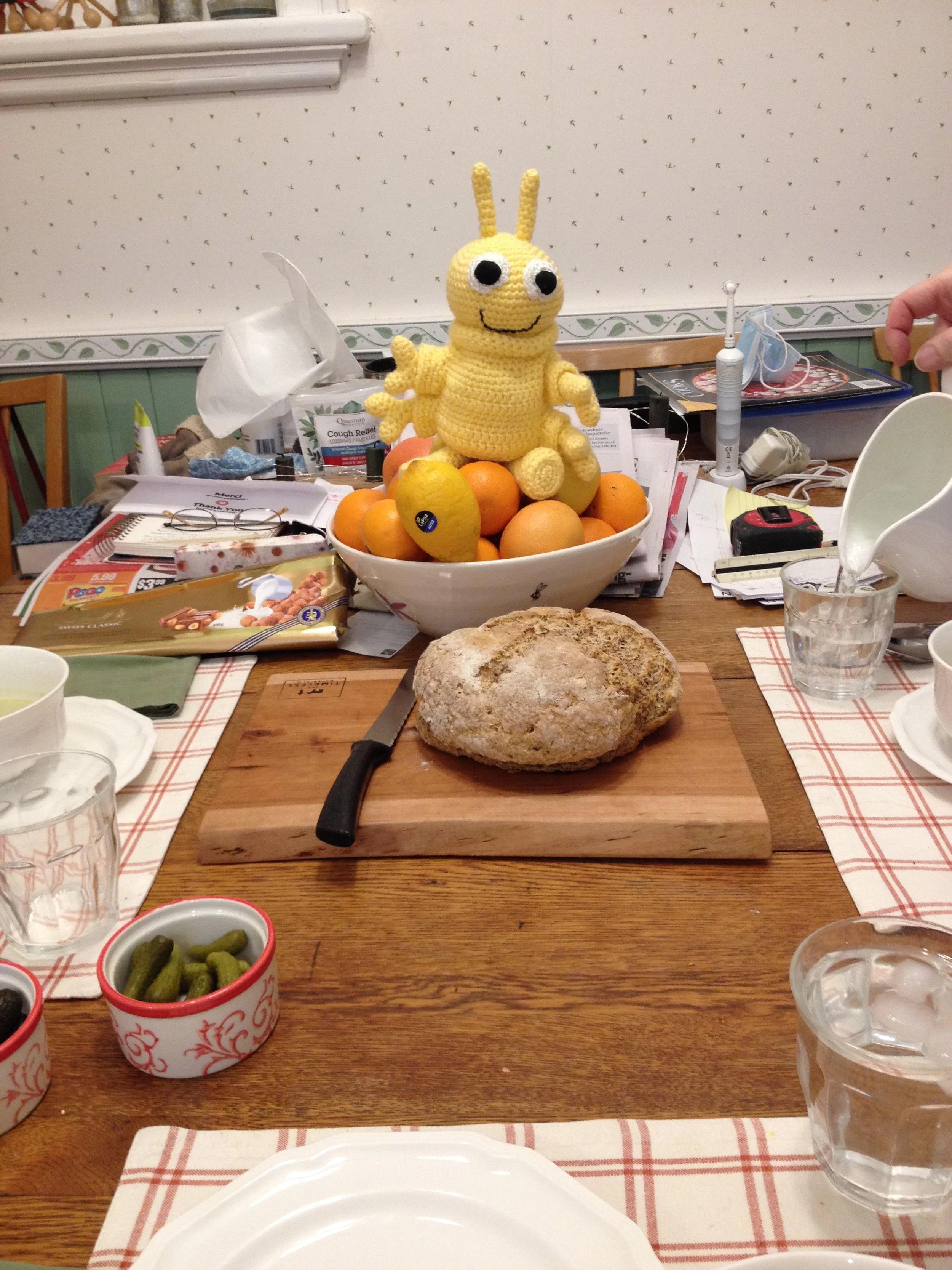 For some of them, I've had an idea of the finished product in my head as I began, but others have been more a case of a starting with something I was interested in trying out and sort of improvising and figuring it out as I went. Mabel was a bit of an improvisation as I started with a vague idea for her body and kept adding bits until I liked how she looked. Edna was inspired by an eyeball I had originally meant to use on Winston before changing my mind. I thought it was a perfectly good eyeball and it seemed a shame not to use it so I decided to come up with an eyeball-centric design. The real challenge with her was figuring out what I could add to her body which wouldn't make her look like a plush coronavirus, which I felt that might be in poor taste. (My mum has a particular fondness for Edna and loves the way the eyeball can be popped out of its socket.)